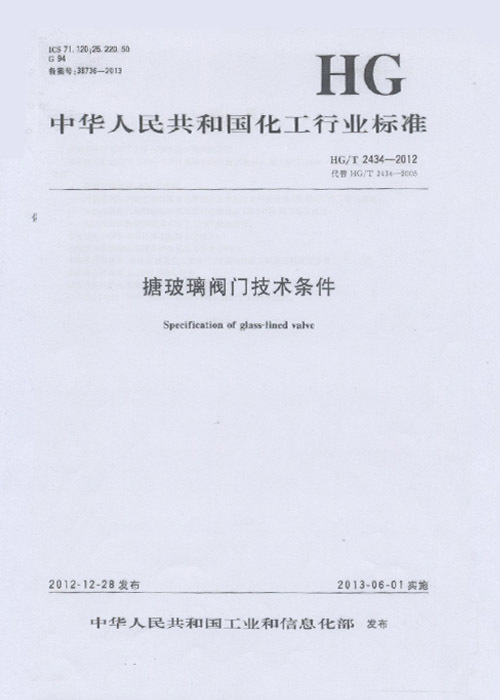 1.《搪玻璃閥門(mén)技術(shù)條件》HG/T2434(由我廠修訂)