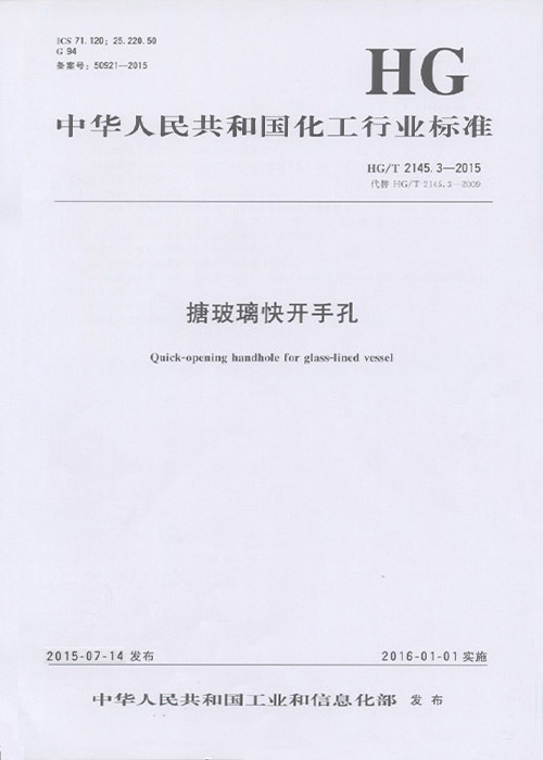 8.《搪玻璃快開(kāi)手孔》HG/T2145.3(由我廠修訂)