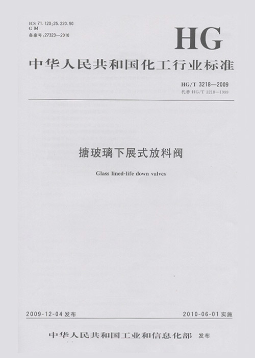 6.《搪玻璃下展式放料閥》HG/T3218(由我廠修訂)